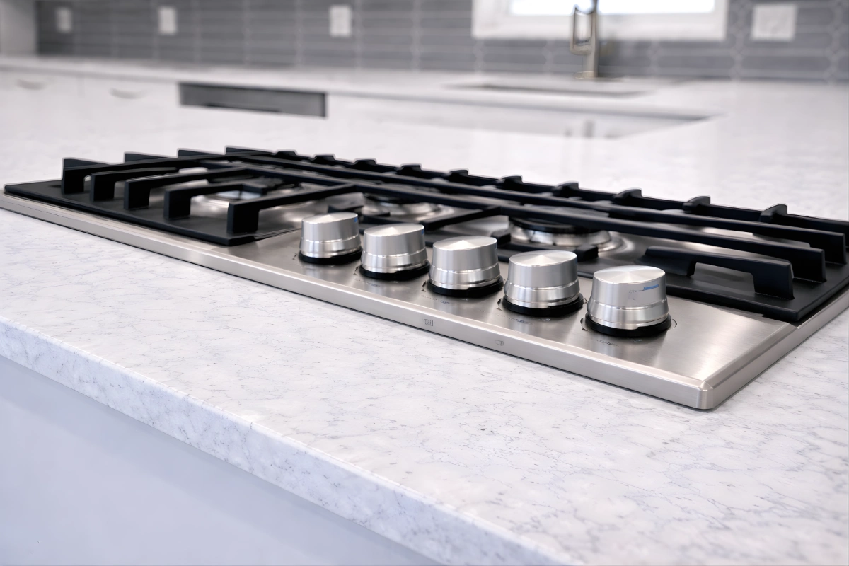 New flooring was installed throughout the kitchen as part of the remodel, creating a cohesive foundation that supports durability while complementing the updated layout.